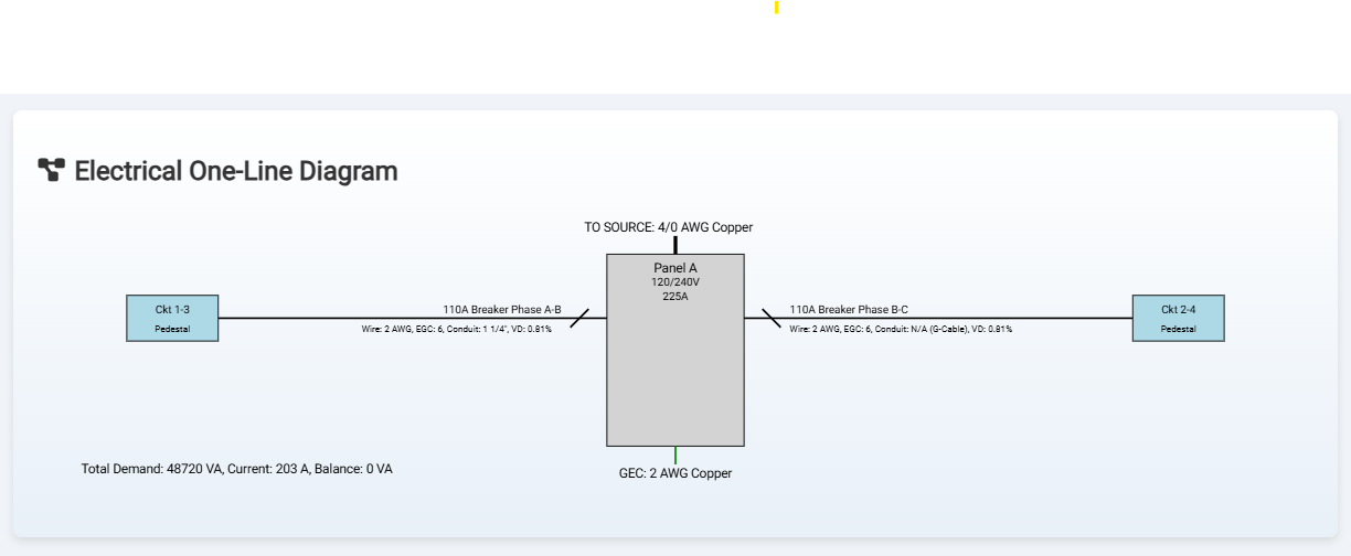 Save your projects for later editing or review, and export the final panel schedules and one‑line diagrams as clean, professional PDFs for your documentation.